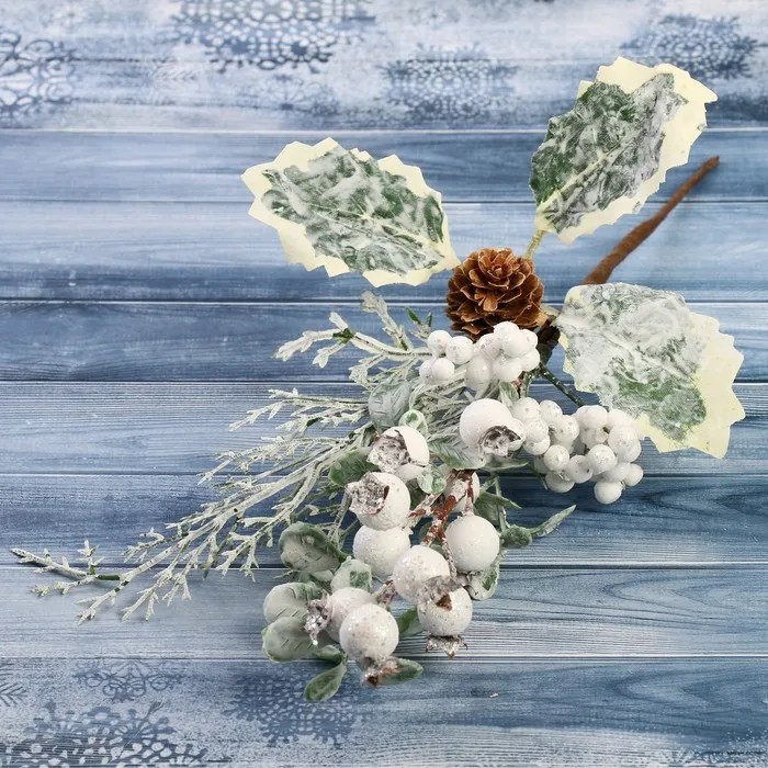 - Тип — декоративная ветка, подходит как для домашнего пространства, так и для создания композиций на Новый год.