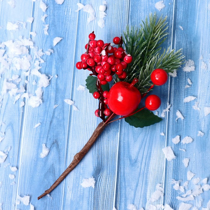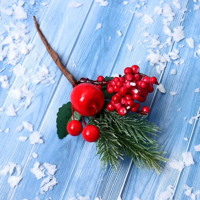 Эта ветка делает интерьер частью вашей личной зимней истории. Зелёно-красная палитра и благородные формы работают вместе, чтобы передать атмосферу покоя, семейного тепла и предпраздничного ожидания. Используйте её как самостоятельный элемент или фоновое дополнение — одинаково хорошо усиливает дух Нового года и уют дома.