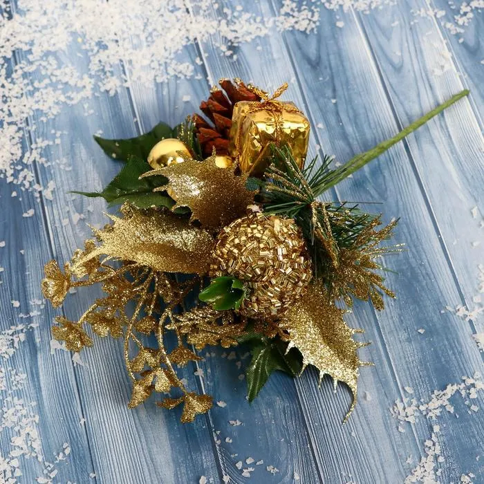 Еловая ветка декоративная «Зимнее волшебство. Грёзы», яблоко в бисере, 15 см — Характеристики