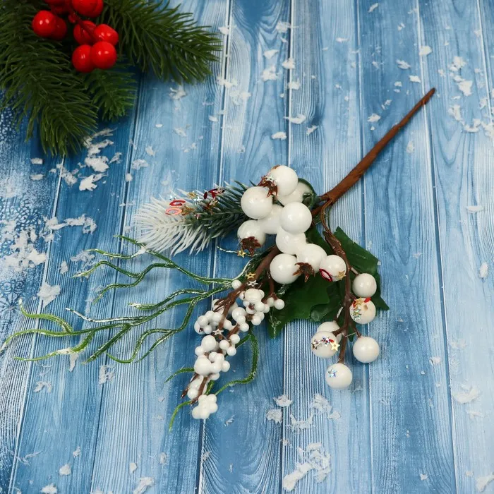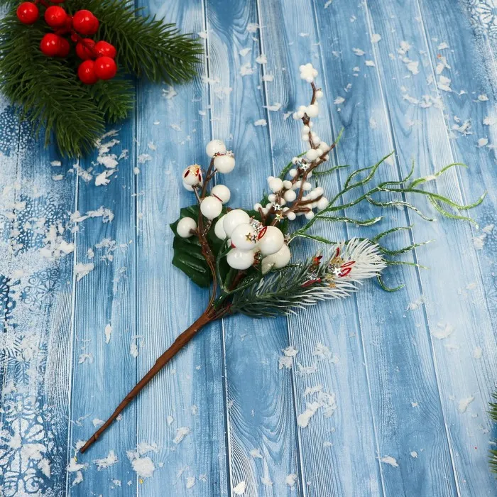 Еловая ветка декоративная «Зимнее волшебство. Грёзы», ягоды, веточки, хвоя, 23 см — Характеристики