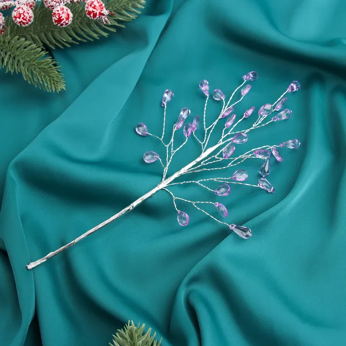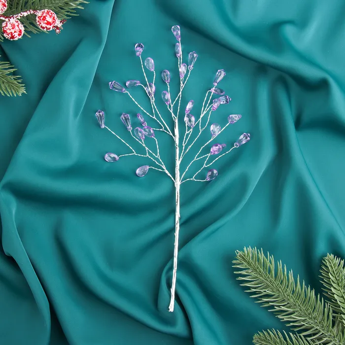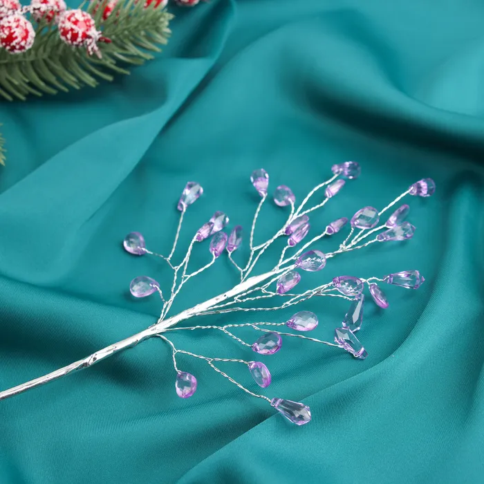 Эта декоративная ветка для новогоднего оформления выполнена из металла и пластика, создавая эффект капельки в сиреневом цвете. Ее длина 23 см и уникальная форма добавляют изящества и волшебства зимним композициям. В стиле фьюжн и шебби-шик она отлично сочетается с различными праздничными декорациями, подчеркивая атмосферу Нового года и зимней сказки.