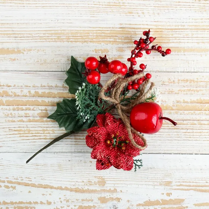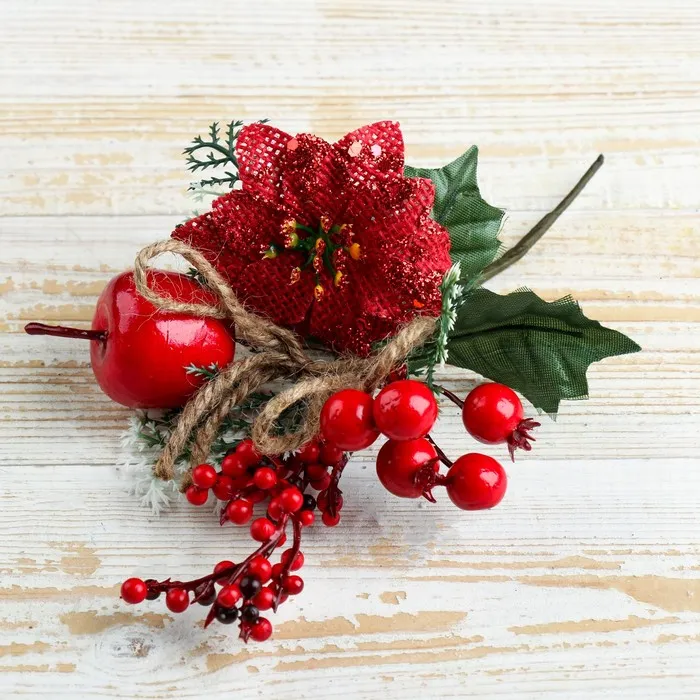 Эта ветка делает ёлку символом ожидания чуда и семейного уюта. Красные тона и благородные линии работают вместе, чтобы превратить дом в пространство вашей личной зимней истории. Используйте её как основной акцент или фоновое дополнение — одинаково хорошо усиливает дух торжества и доброжелательность дома.