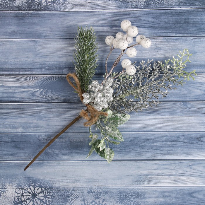 Еловая ветка декоративная «Зимнее волшебство. Магия», хвоя, листья, белые ягоды, 24 см — Характеристики