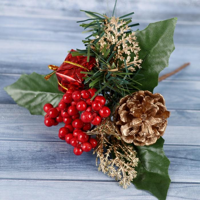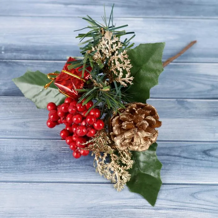 Наскучила традиционная мишура и простые ёлочные игрушки? Еловая ветка декоративная «Зимнее волшебство. Мечты», 18 см освежит новогодний интерьер и добавит ему оригинальность.