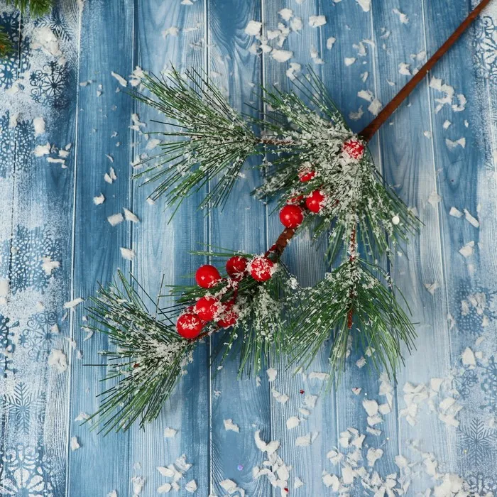 Эта ветка делает пространство дома или рабочей зоны частью вашей личной истории о чуде и подарках. Красные тона работают вместе с другими акцентами, чтобы передать дух Нового года и предпраздничное ожидание. Используйте её как центральный элемент или фон для других украшений — одинаково хорошо усиливает атмосферу торжества и доброжелательность интерьера.