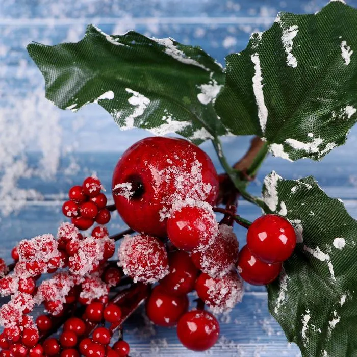 Декоративная ветка «Очарование» — это мягкий и яркий акцент для новогоднего убранства. Изделие длиной 25 см выполнено из пластика с элементами из металла, бумаги и текстиля. Украшение оформлено в красном цвете и создано в стиле новогоднего барокко с отсылкой к скандинавскому минимализму — решение для тех, кто ценит свет, форму и атмосферу зимнего праздника без лишней пестроты.