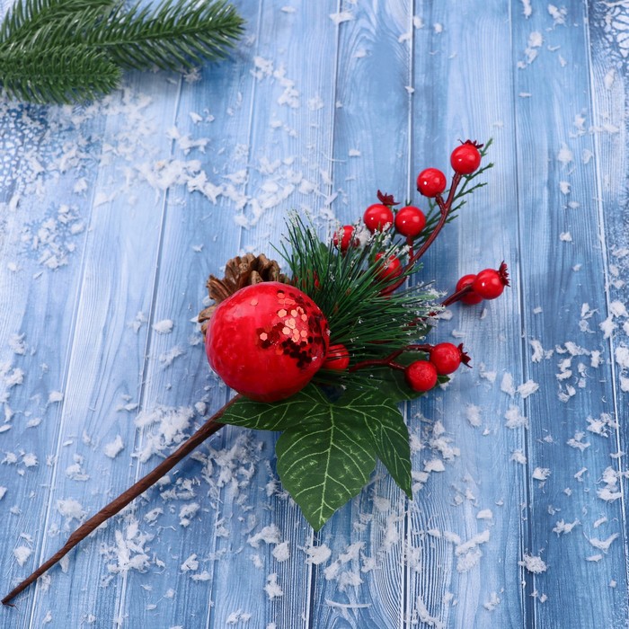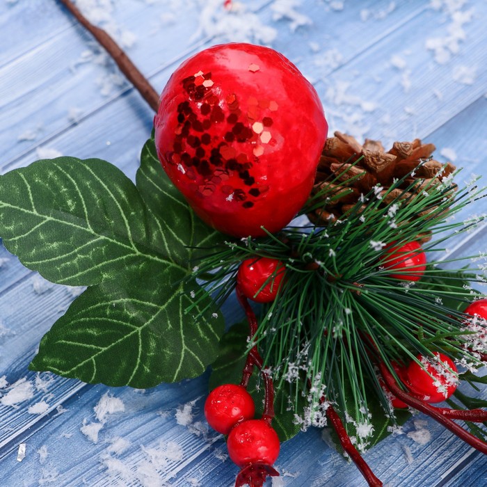 - Тип — декоративная ветка, подходит как для интерьера, так и для создания праздничных композиций на ёлку или стену.