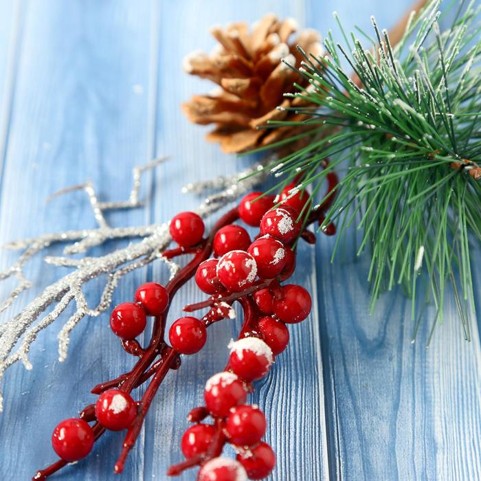 - Тип — декоративная ветка, подходит как для интерьера, так и для создания композиций на ёлку, стену или подарочную упаковку.