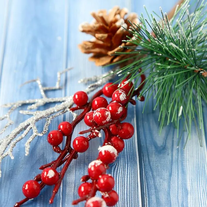 Эта ветка делает дом частью вашей истории о снежном чуде и подарках. Зелёные тона с серебром, красные ягоды и коричневая текстура работают вместе, чтобы передать дух Нового года и предпраздничное ожидание. Используйте её как самостоятельный элемент или как фон для других акцентов — одинаково хорошо усиливает атмосферу торжества и доброжелательность пространства.