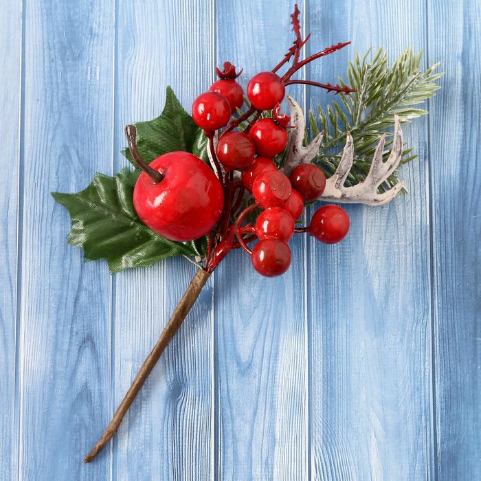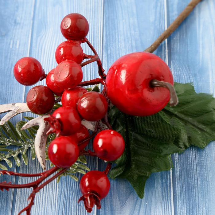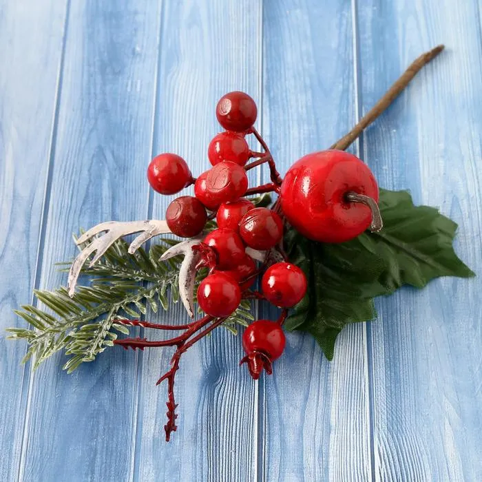 Декоративная ветка «Очарование» — это яркий и лаконичный элемент для праздничного новогоднего декора. Изделие длиной 20 см выполнено из пластика и оформлено в виде хвои с красным яблоком и ягодами. Украшение разработано в зелёно-красной цветовой гамме и создано в стиле новогоднего барокко с отсылкой к скандинавской простоте — решение для тех, кто ценит свет, форму и зимнюю атмосферу без лишней вычесленности.