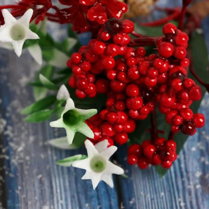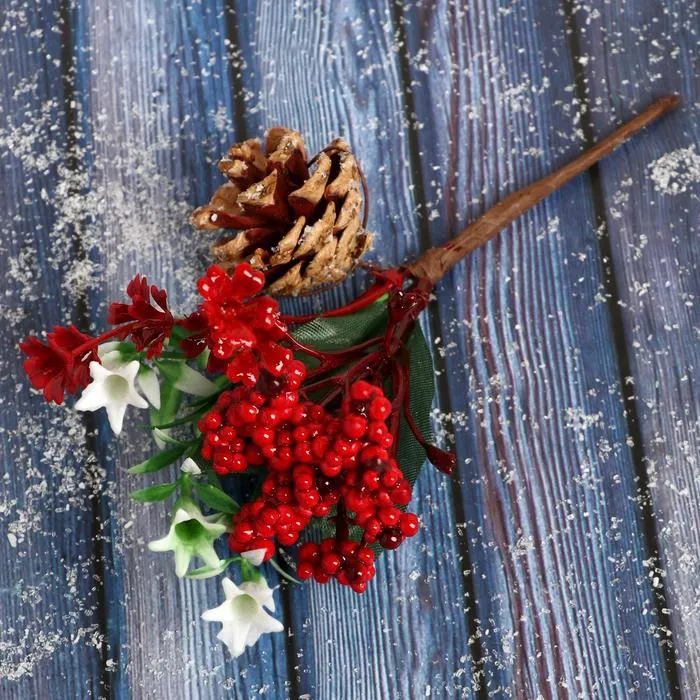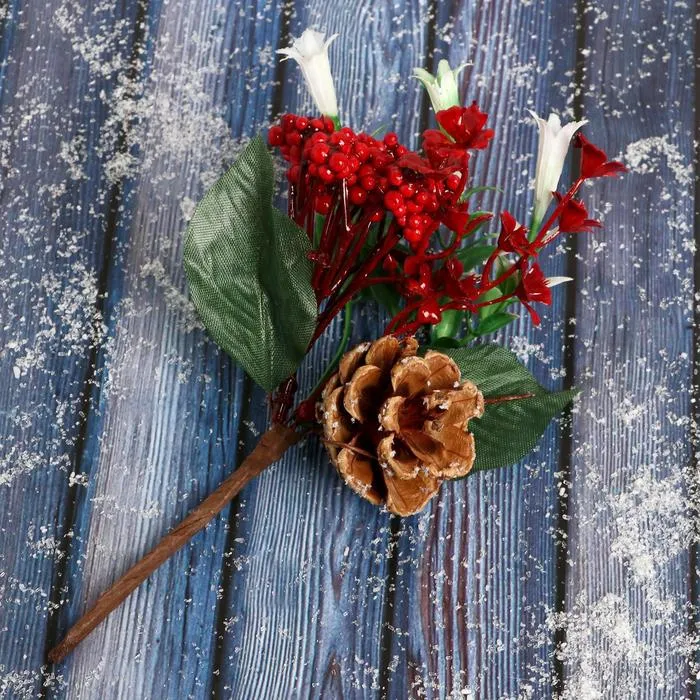 Еловая ветка декоративная «Зимнее волшебство. Очарование», шишка, ягоды цветочки, 15 см — Характеристики