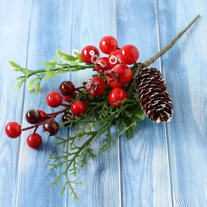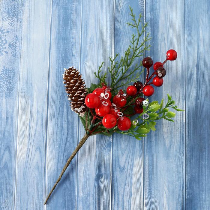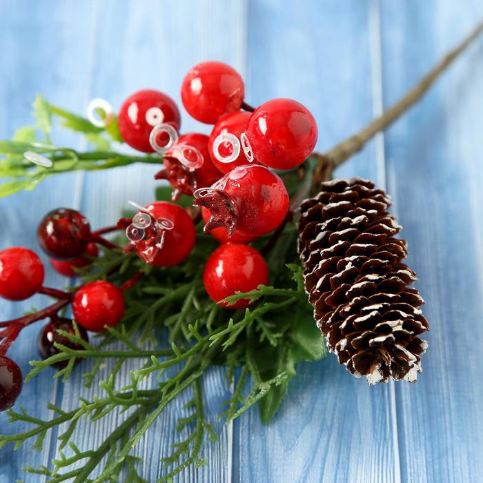 Еловая ветка декоративная «Зимнее волшебство. Очарование», шишка, ягоды, зелень, 20 см — Характеристики