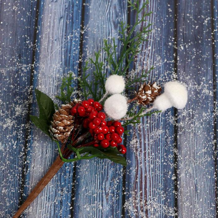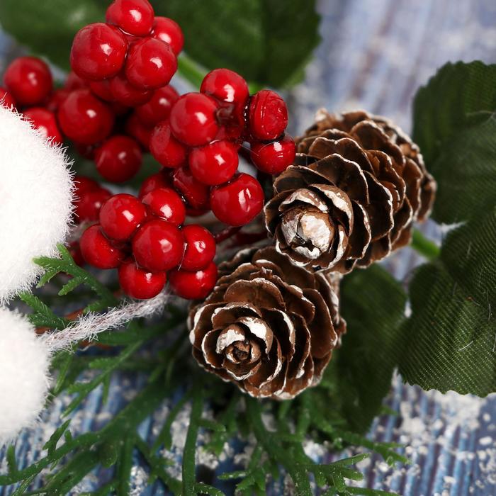 Еловая ветка декоративная «Зимнее волшебство. Очарование», шишки, ягоды, белые грибы, 25 см — Характеристики