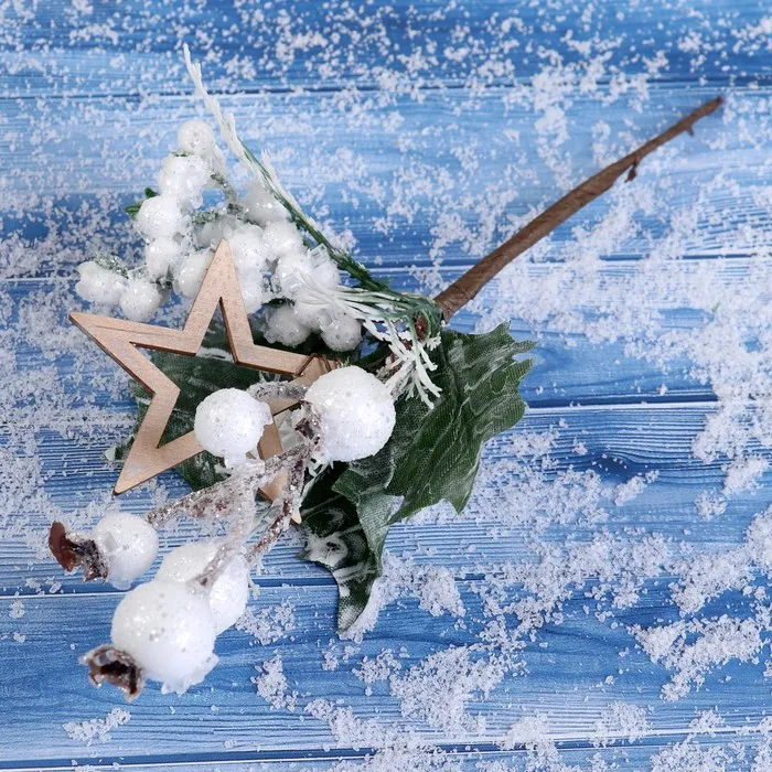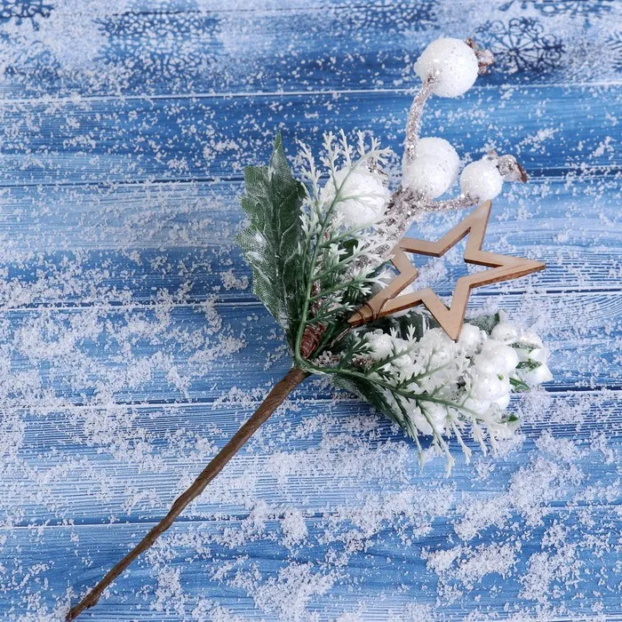 - Тип — декоративная ветка, подходит как для интерьера, так и для создания праздничных композиций на Новый год.