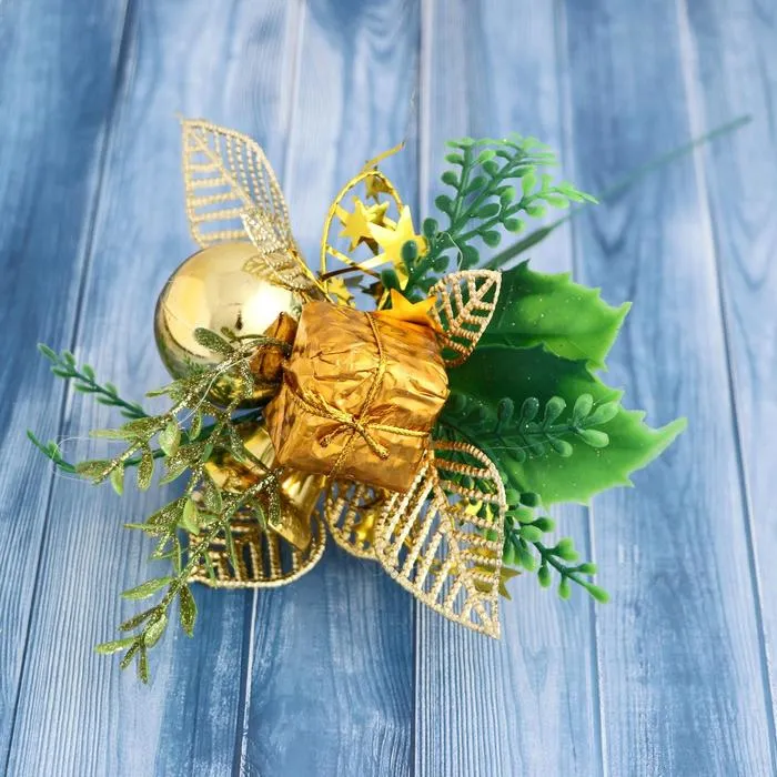 Эта декоративная ветка в стиле ар-деко, классика, новогоднее барокко и шебби-шик выполнена в золотистом цвете и имеет высоту 15 см. Ее композиционный дизайн позволяет создавать изысканные украшения для новогодних интерьеров, подчеркивающих праздничную атмосферу и элегантность. Материалы — металл и пластик — обеспечивают прочность и реалистичный внешний вид, делая ветку универсальным элементом для оформления зимних праздников.