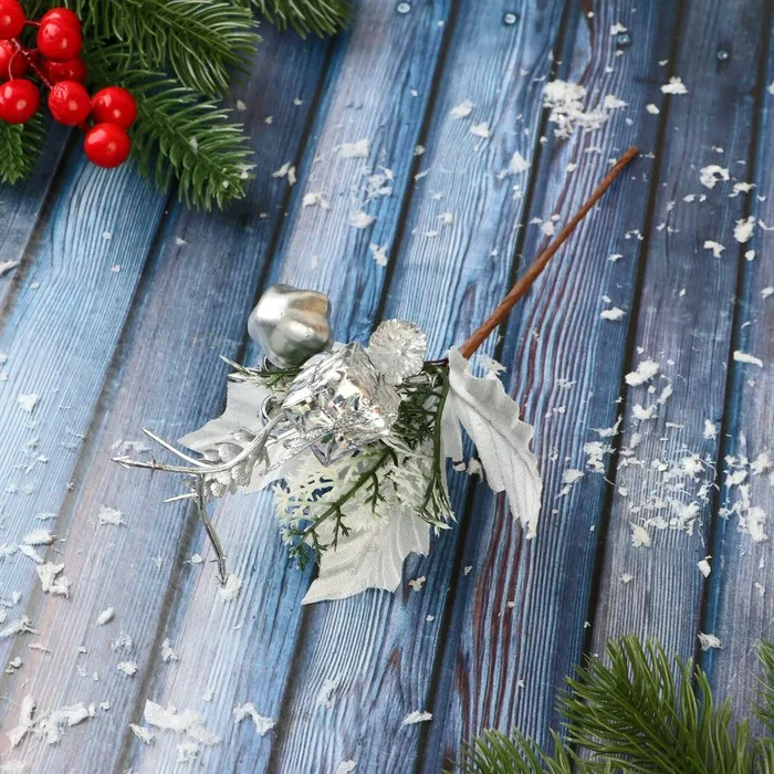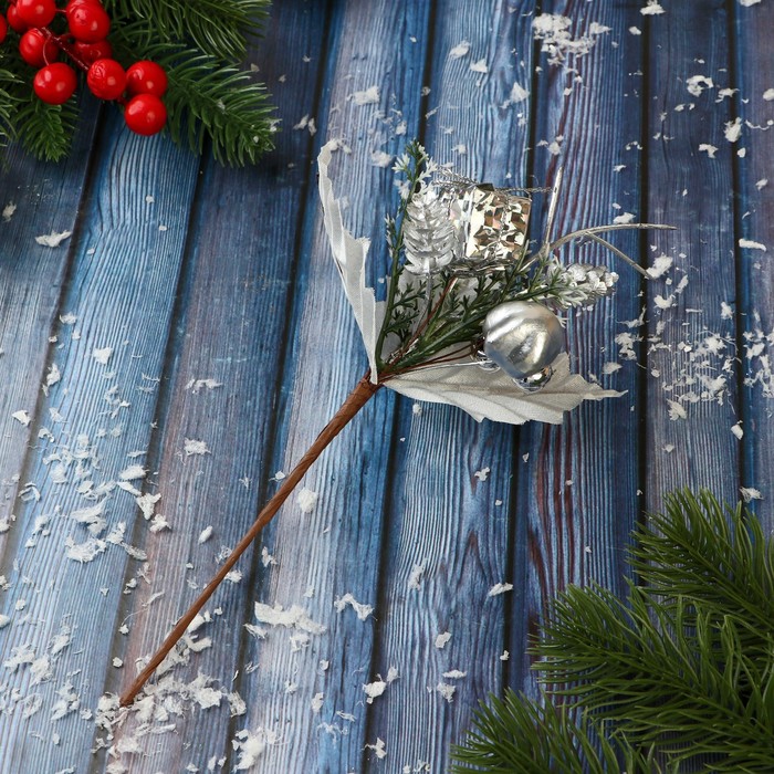 Еловая ветка декоративная «Зимнее волшебство. Зимнее восхищение», 20 см, серебро — Характеристики