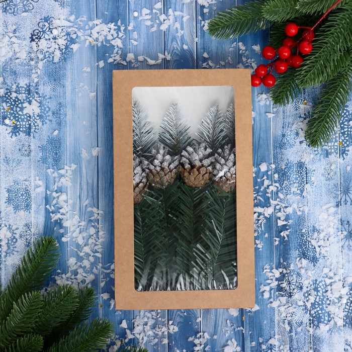 Еловые ветки декоративные «Набор №1» ветки без шишки 20×5 см (5 шт.), с шишкой 17×5 см (4 шт.)