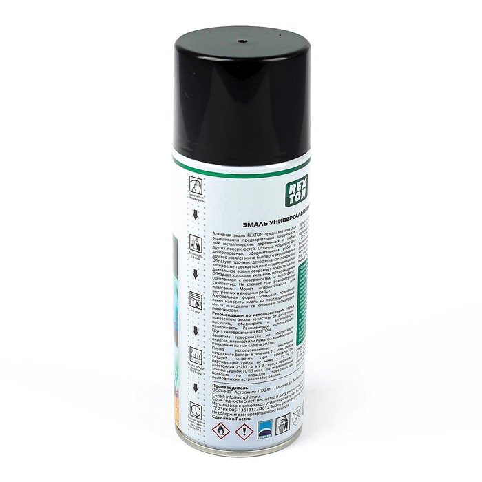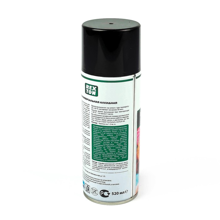 Эмаль алкидная универсальная REXTON, черная глянцевая, аэрозоль, 520 мл — Характеристики