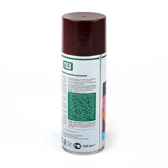 Эмаль алкидная универсальная REXTON, коричневая, аэрозоль, 520 мл — Характеристики