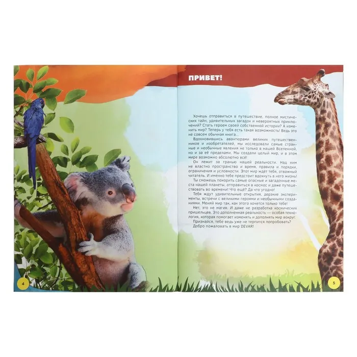 По многочисленным просьбам мы выбрали из наших популярных энциклопедий самые увлекательные факты, объединили их и выпустили в более компактном формате. Теперь каждый сможет завести жирафа и погладить льва! Они оживут в 4D–объёме в дополненной реальности с помощью бесплатного приложения от Devar.