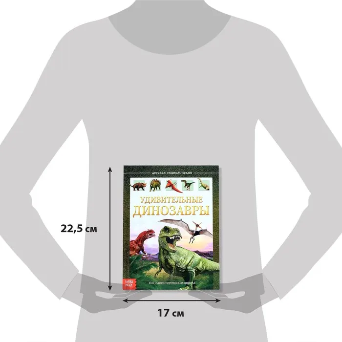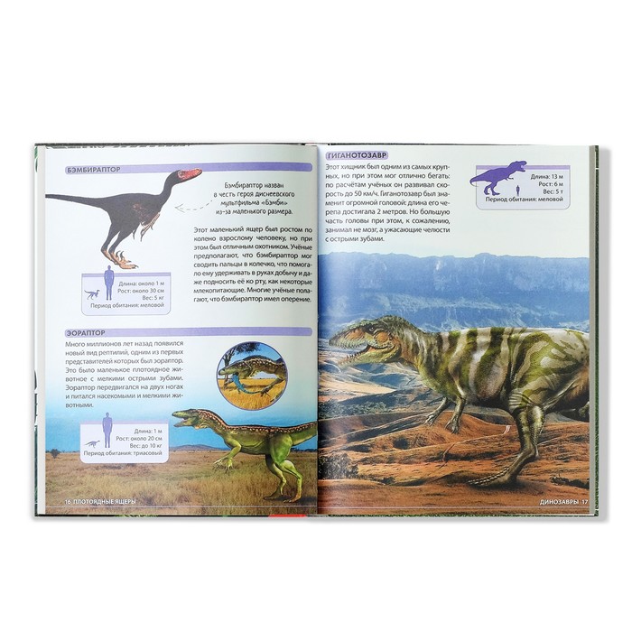 - Твёрдый переплёт книги позволяет брать её с собой, чтобы изучать мир динозавров вместе с друзьями и близкими.