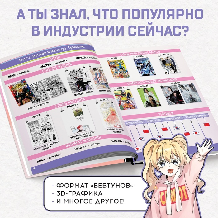 - Энциклопедия не только расскажет, но и покажет: все о манге, манхве и маньхуа. Полную историю их возникновения и становления. Особенности рисовки и жанров. Отличительные черты аниме Японии, Китая и Кореи, и множество интересных фактов!