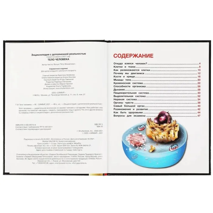 Эта занимательная энциклопедия расскажет юному читателю о том, как устроено наше тело, как функционирует наш организм и какие функции выполняет. Для большей наглядности книга оснащена технологией дополненной реальности, для её работы необходимо установить специальное приложение. При наведении камеры телефона на отмеченную пунктиром область страницы читатель погрузится в виртуальную реальность и сможет управлять анимированным сюжетом. Такой способ подачи материала в совокупности с яркими иллюстрациями и удивительными фактами увлечет ребёнка и поможет ему быстро, эффективно и с удовольствием усвоить новую информацию.