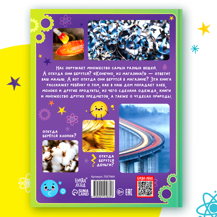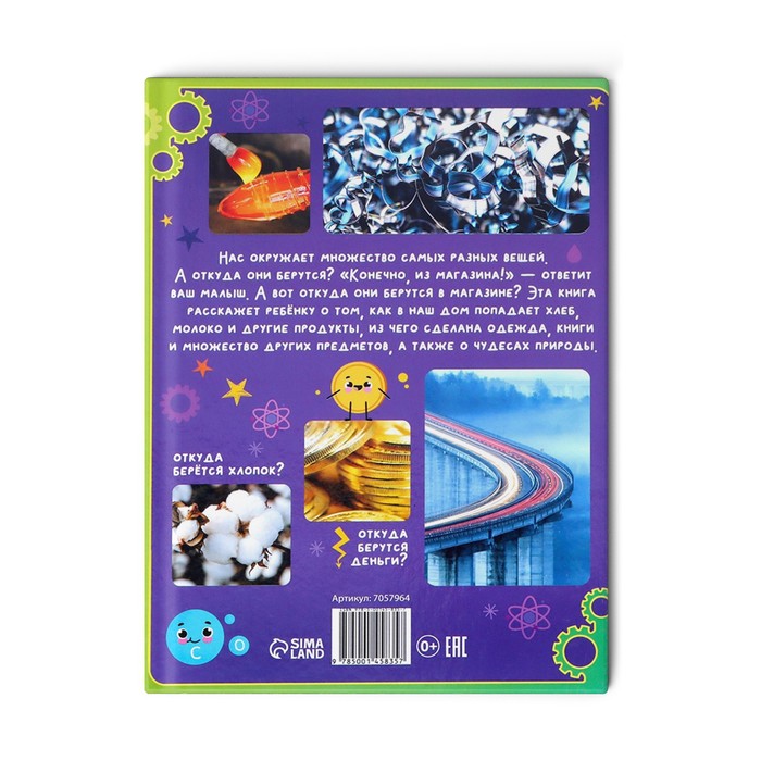 Нас окружает множество самых разных вещей. А откуда они берутся? «Конечно из магазина!» — ответит ваш малыш. А вот откуда они берутся в магазине? Эта книга расскажет ребёнку о том, как в наш дом попадает хлеб, молоко и другие продукты, из чего сделана одежда, книги и множество других предметов, а также о чудесах природы.