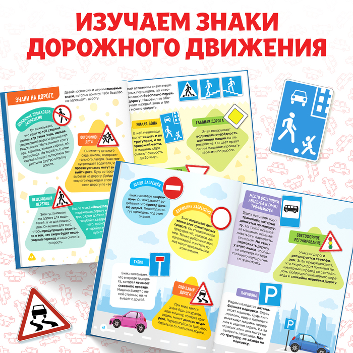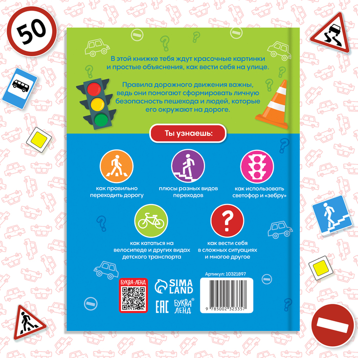 Эта книга напоминает путеводитель по безопасной жизни на дороге, где каждая страница — это маленький урок. Ребёнок словно становится исследователем, который учится распознавать знаки, понимать сигналы светофора и правильно переходить улицу. Это похоже на игру, где каждое правило — это ключ к безопасному перемещению в мире, полном машин и пешеходов. Каждая тема учит малыша быть внимательным, осторожным и уверенным в своих действиях.
