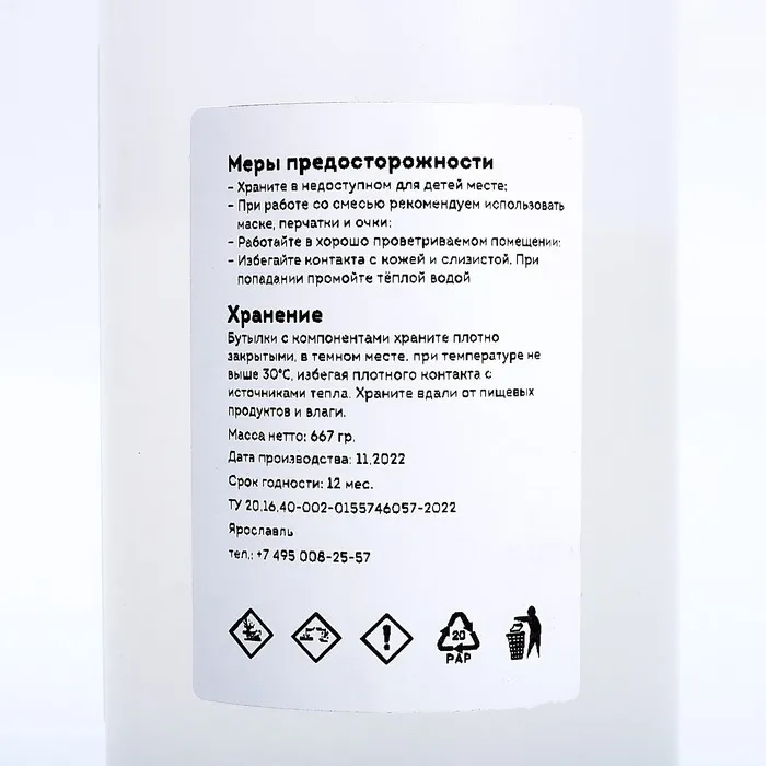 Эпоксидная смола для творчества ArtEpoxy Густая, 1 кг (смола 667 г + отвердитель 334 г) — Характеристики