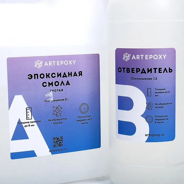 Эпоксидная смола ArtEpoxy используется для рисования смолой в технике resin art, а также для заливок с куполом. Может использоваться как финишное покрытие. Глянцевая, саморастекающаяся, прозрачная.