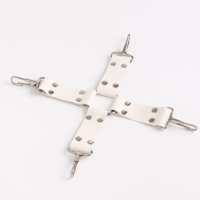 БДСМ набор выполнен из эко-кожи. Все ремни имеют систему регулировки. В состав набора входят 8 предметов: наручники, оковы, крестовина, ошейник, поводок, маска, кляп, плеть. Наручники, оковы и ошейник с мягкой вставкой, которая обеспечит приятное прилегание к телу. Поводок и крестовина крепятся к ошейнику при помощи карабина, имеет длину 60 см. Кляп выполнен из эко-кожи и abs пластика. Шарик имеет оптимальный размер, хорошо помещается в рот, а ремешок имеет систему регулировки, так что он подойдет и для нее и для него.