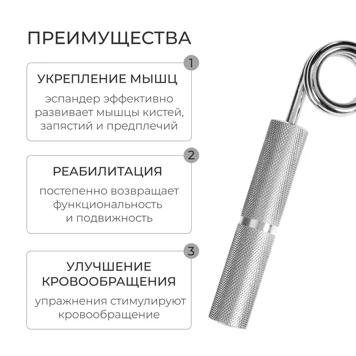 Кисти рук активно задействованы во многих видах физических упражнений, как на тренажерах, так и без таковых. Однако дополнительная тренировка кистей никогда не помешает, тем более что предназначенные для этой цели кистевые эспандеры хорошо развивают мышцы не только кистей рук, но и запястий. Помимо этого кистевые эспандеры легки и компактны, что позволит вам легко взять их с собой, положив в сумку или рюкзак, и поддерживать хорошую спортивную форму даже в путешествии.