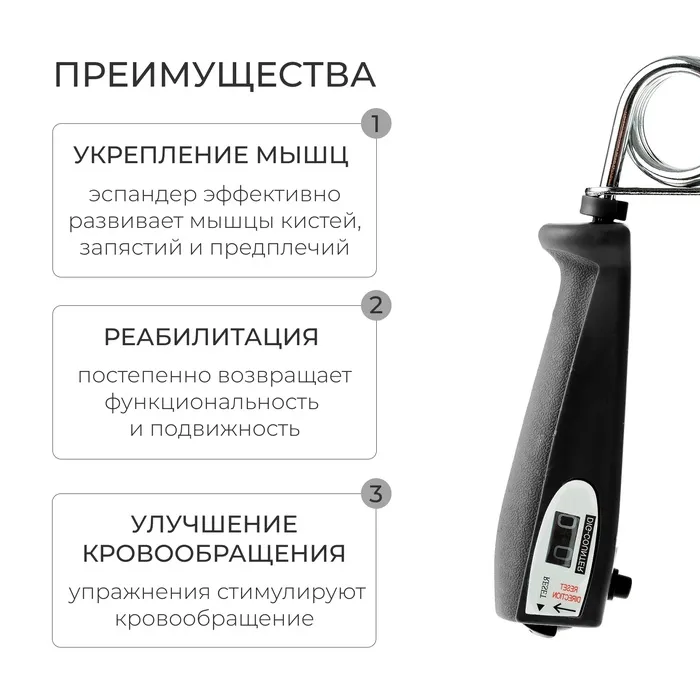 Эспандер кистевой ONLYTOP, со счётчиком, 30 кг, цвета МИКС — Характеристики