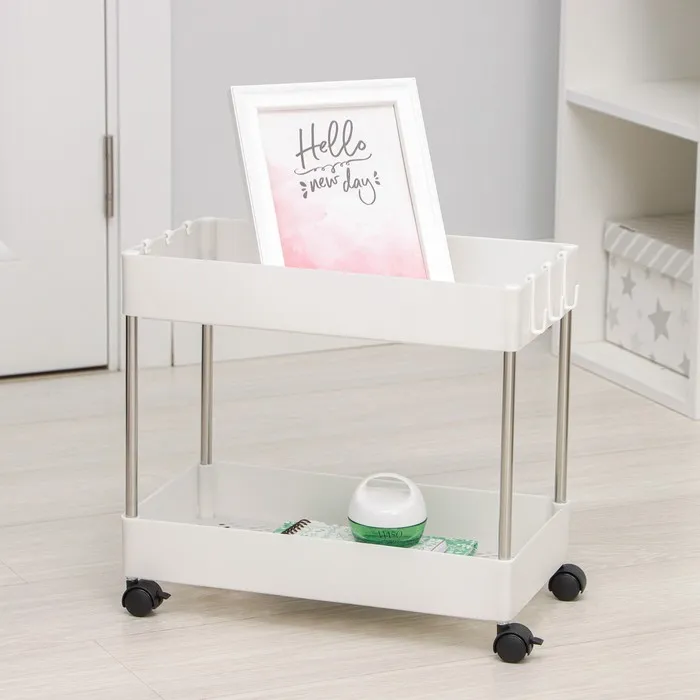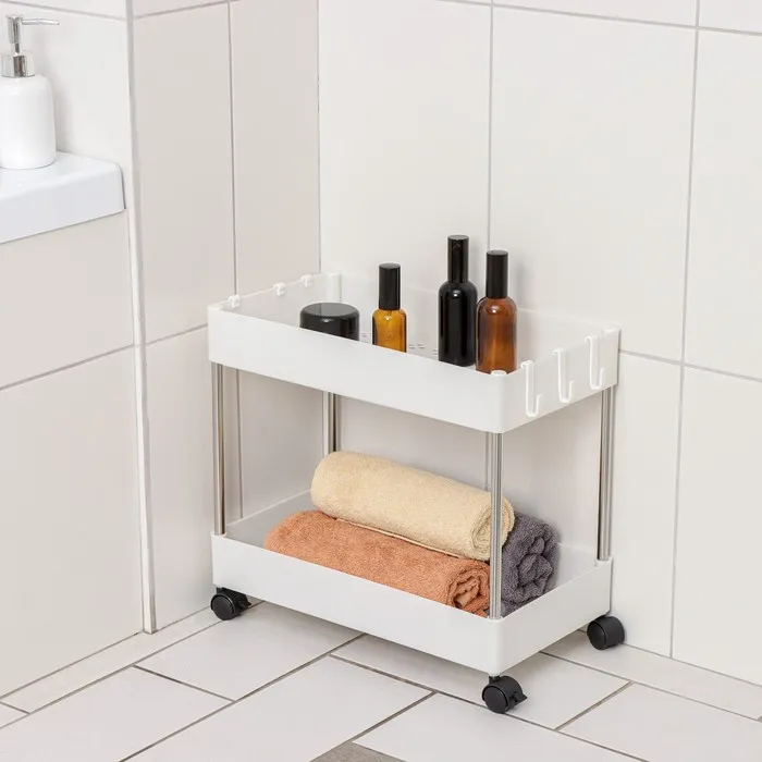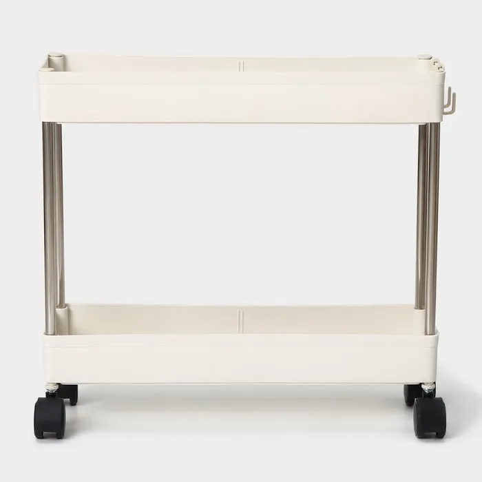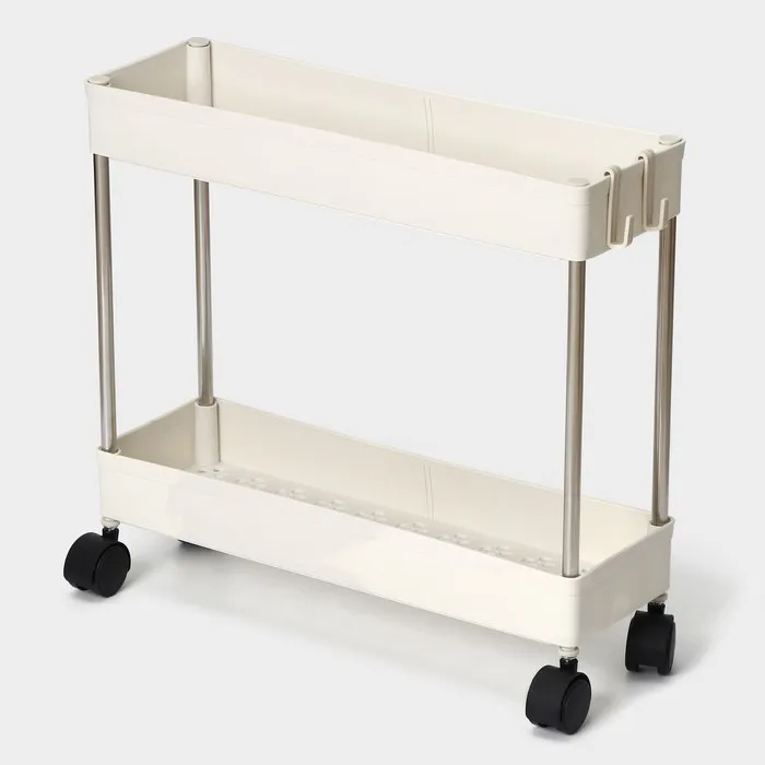Этажерка 2-х ярусная на колёсах, 40×13×31 см, белая — Характеристики