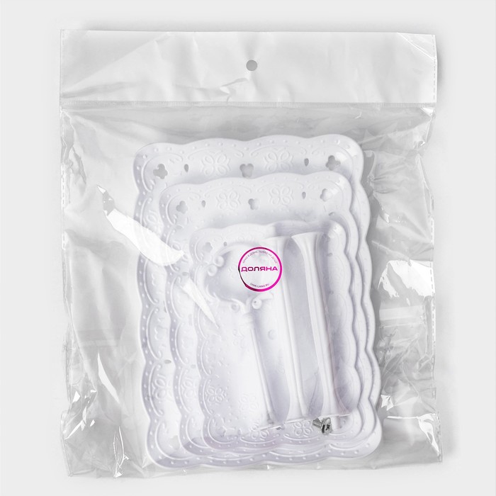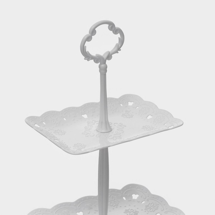 Этажерка для фруктов и десертов Доляна «Вивьен», 3 ярусная, пластик, 15.5×11 см, 19.2×13.8 см, 22.7×16.4 см, белая — Характеристики