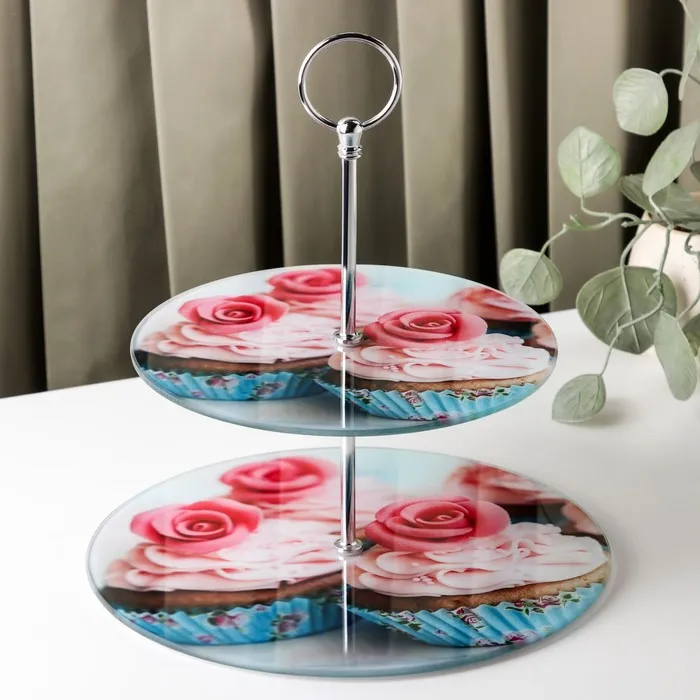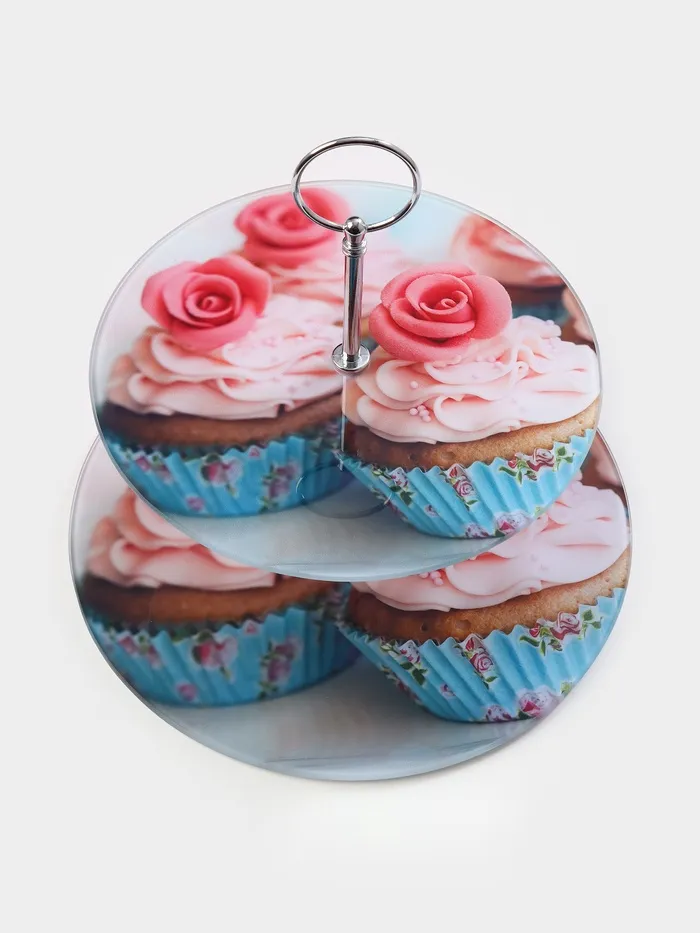 Оригинальное 2-х ярусное блюдо изготовлено из качественного и прочного стекла. Блюдо можно использовать для подачи фруктов и различных кондитерских изделий. Благодаря красочному дизайну эта посуда станет чудесным украшением праздничного стола.