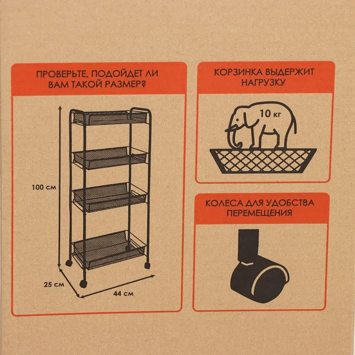 Этажерка с 4-мя корзинами предназначена для хранения вещей в любом помещении дома или офиса.
