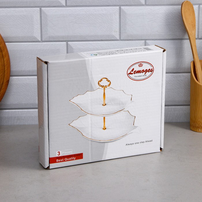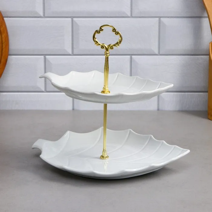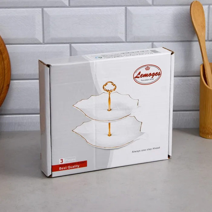 Фарфоровая этажерка сэкономит место на вашем столе, поможет создать атмосферу праздника, и стать украшением стола. Идеально подходит для сервировки закусок, овощей, орехов, фруктов, пирожных, капкейков, конфет и других десертов и сладостей. Она состоит из нескольких ярусов, что позволяет разместить на ней большое количество еды, а также сделать ваш стол более изысканным и утонченным.