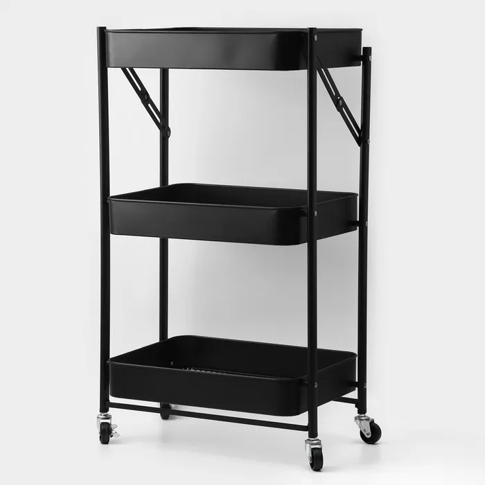 Этажерка напольная 3-х ярусная, 45.5×29.5×77.5 см, на колёсиках, чёрная — Характеристики