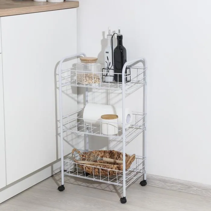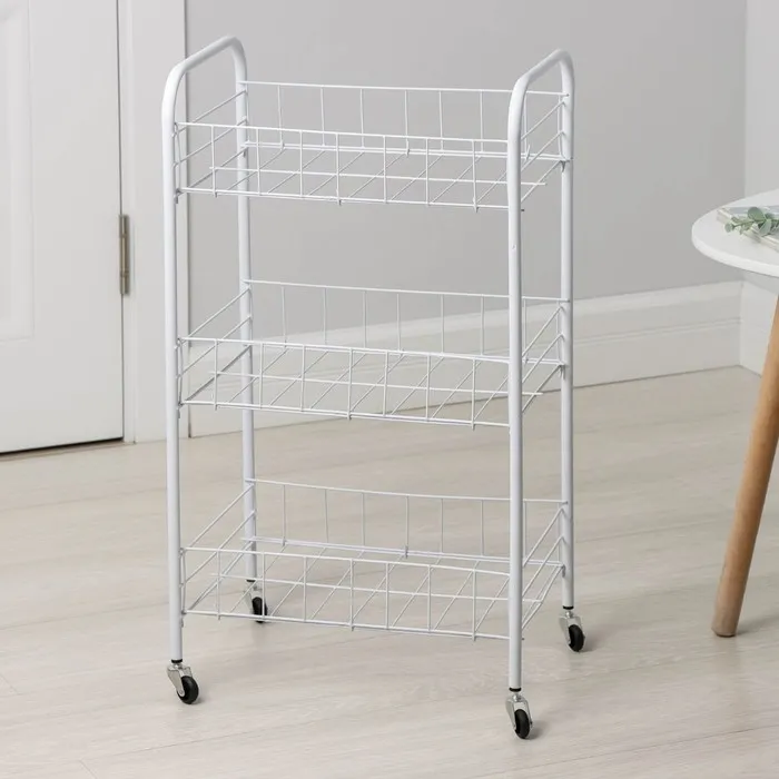 Этажерка напольная 3-х секционная, на колёсиках, 27×36×66 см, белая