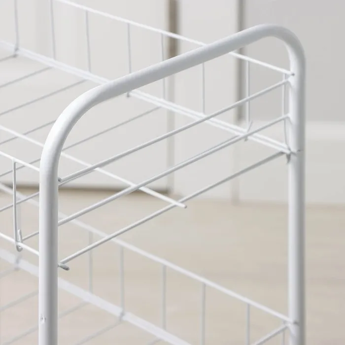 Прочный металлический корпус с лёгкостью выдерживает значительный вес, а четыре колёса гарантируют мобильность передвижения в любом пространстве! Также этажерка очень устойчива: угловое расположение колесиков значительно снижает вероятность потери равновесия. Наконец, окрашенный корпус даст мощный отпор ржавчине на годы вперёд, а небольшая масса изделия облегчает работу с ним.
