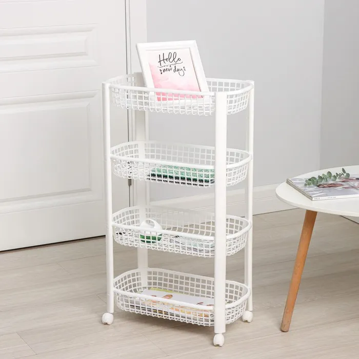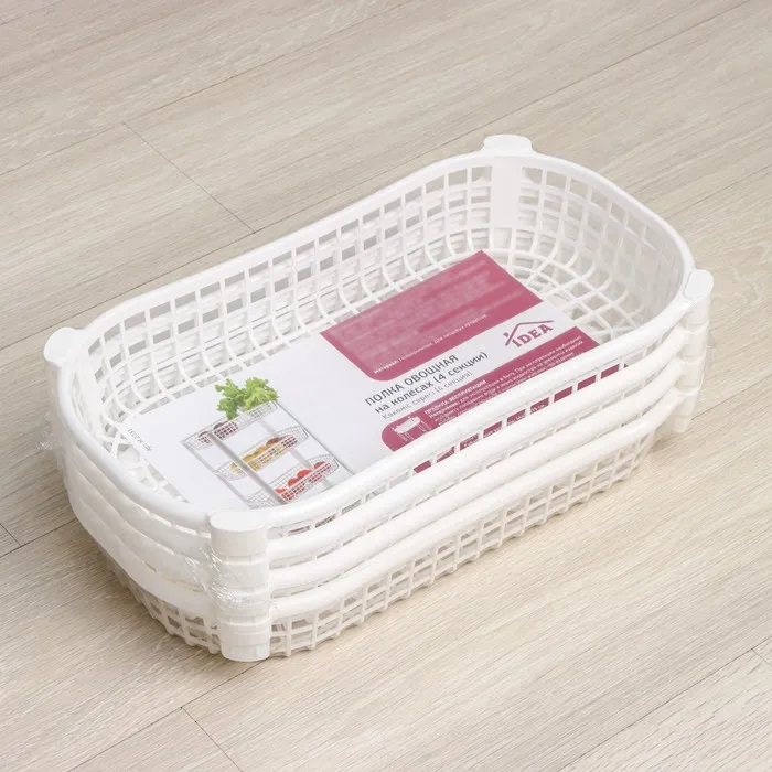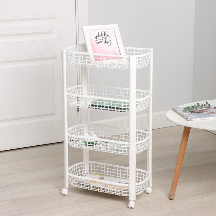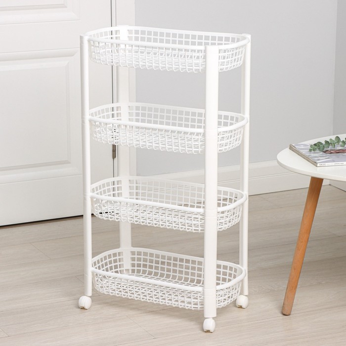 Этажерка напольная 4-х секционная, на колёсах, белая — Характеристики
