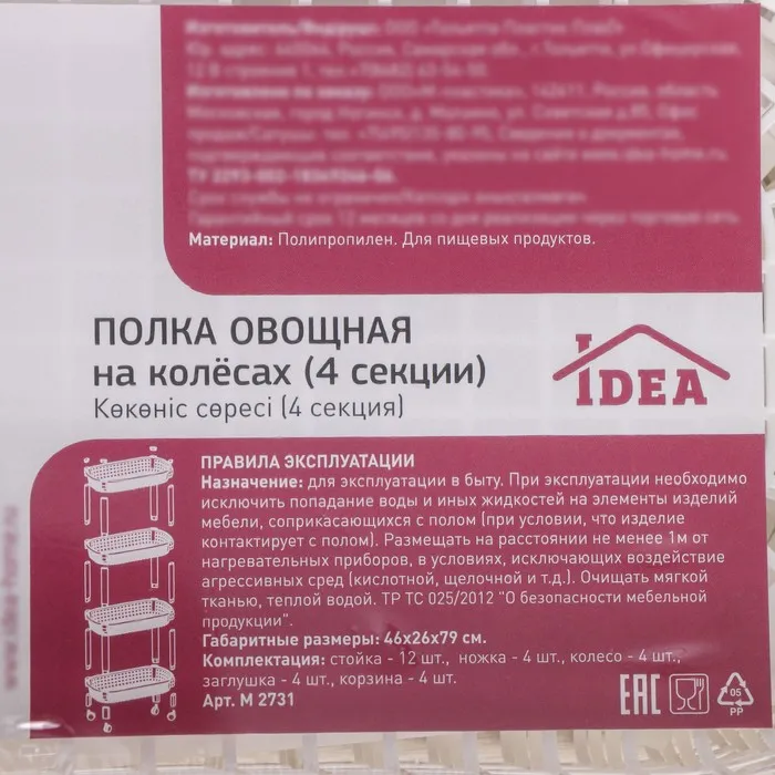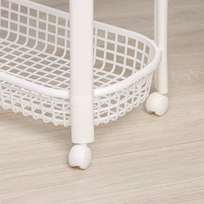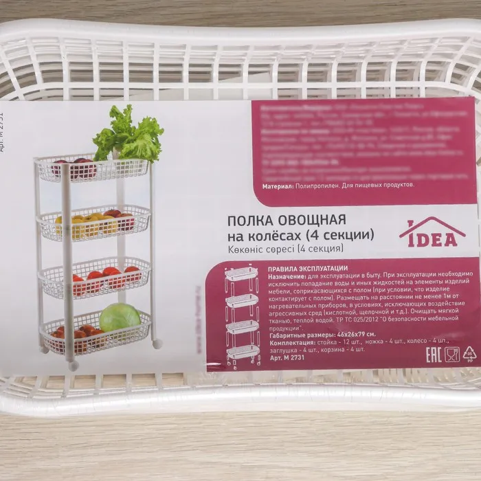 Прочный пластмассовый корпус стеллажа выдерживает высокую нагрузку, а колёсики обеспечивают мобильность изделия. Удобная, компактная, но в то же время вместительная, она прекрасно впишется в пространство любого помещения. Изделие можно расположить на кухне, в прихожей, ванной, гостиной, детской или спальне.