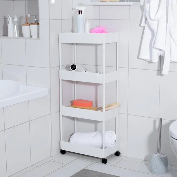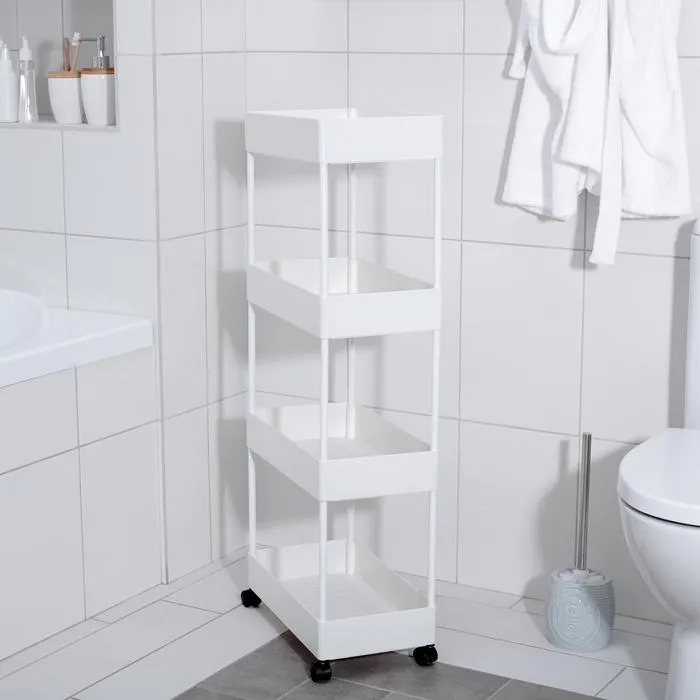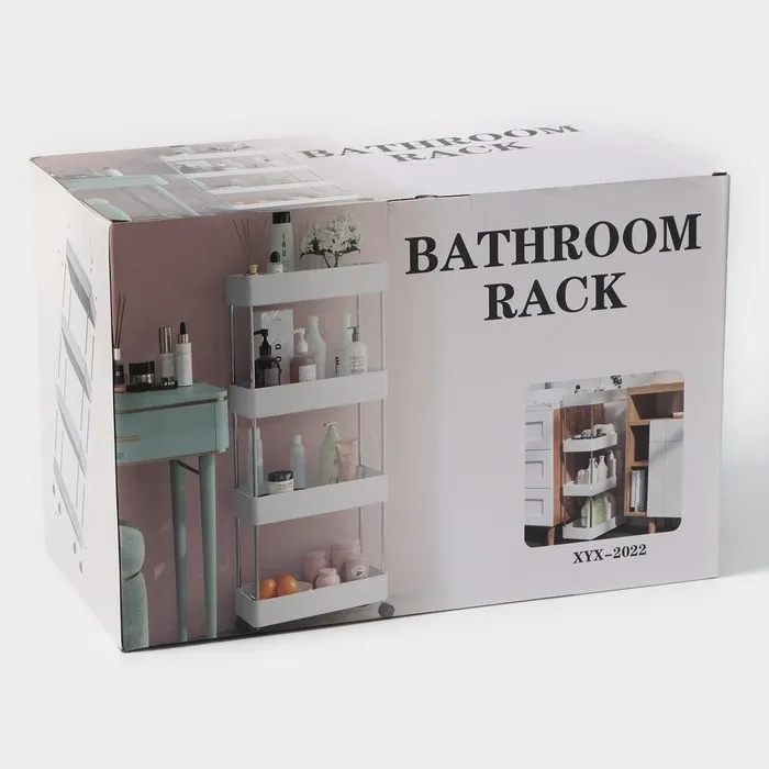 Этажерка напольная, 4-х секционная, на колёсиках, 40×21.7×90 см, белая — Характеристики