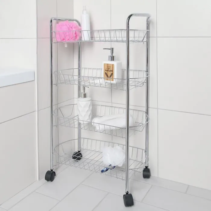 Прочный металлический корпус с лёгкостью выдерживает значительный вес! Также этажерка очень устойчива. Наконец, хромированный корпус даст мощный отпор ржавчине на годы вперёд, а небольшая масса изделия облегчает работу с ним.