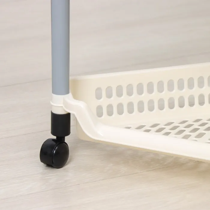 Прочный пластмассовый корпус стеллажа выдерживает высокую нагрузку, а колёсики обеспечивают мобильность изделия. Удобная, компактная, но в то же время вместительная, она прекрасно впишется в пространство любого помещения. Изделие можно расположить на кухне, в прихожей, ванной, гостиной, детской или спальне.