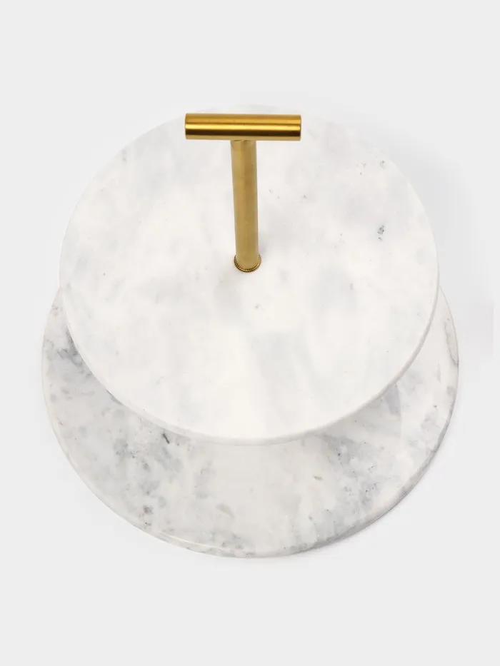 Представляем вашему вниманию изысканное двухъярусное блюдо из мрамора Magistro Marble. Это не просто функциональная посуда, а настоящий элемент декора для вашего стола. Благодаря своему элегантному дизайну и высокому качеству материалов, это блюдо станет украшением любого мероприятия.