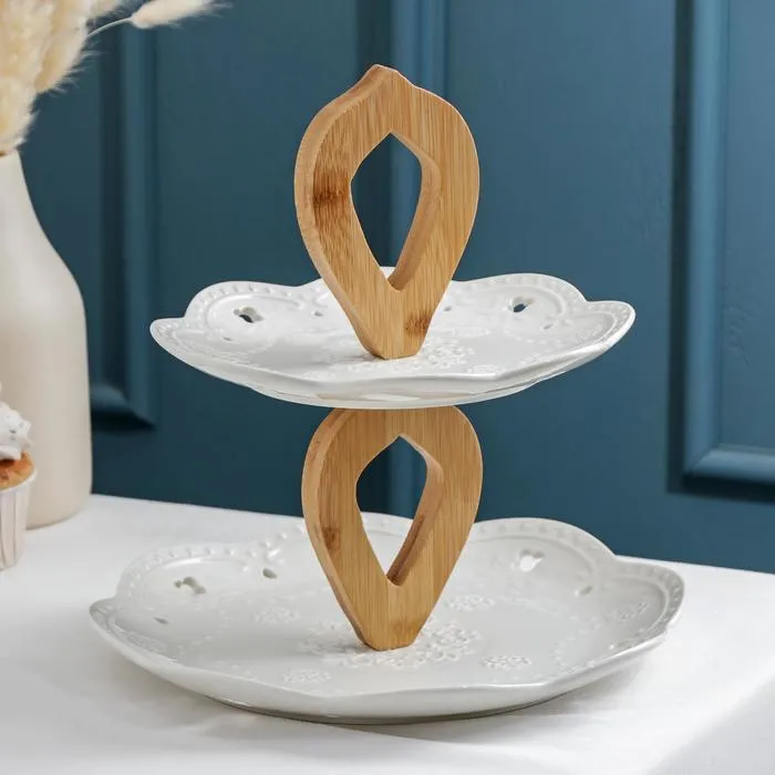 Используйте это многоярусное блюдо для сервировки. Элегантная посуда позволит удобно и красиво разместить на столе пирожные, фрукты или бутерброды.