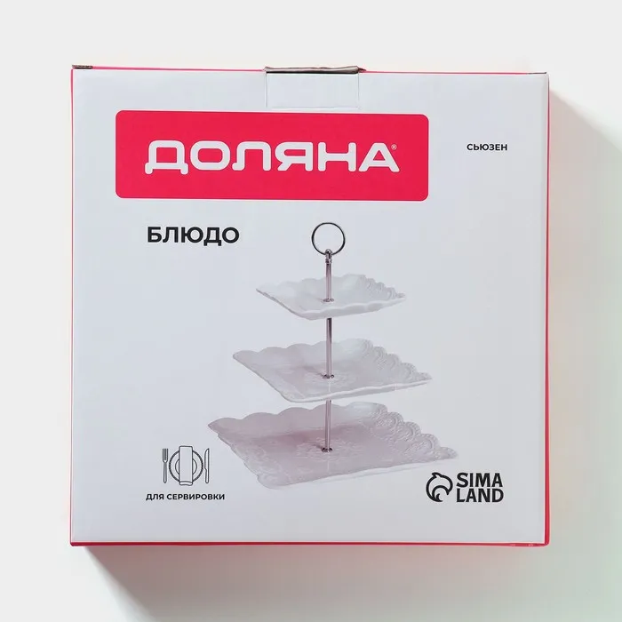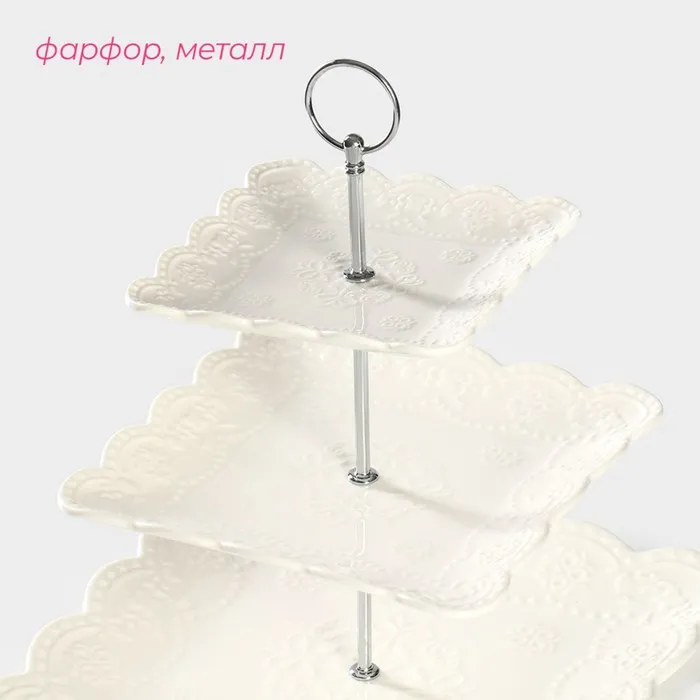 Этажёрка Фруктовница Доляна «Сьюзен», 3 яруса, 14.5/20/24.5 см, фарфор, белая — Характеристики
